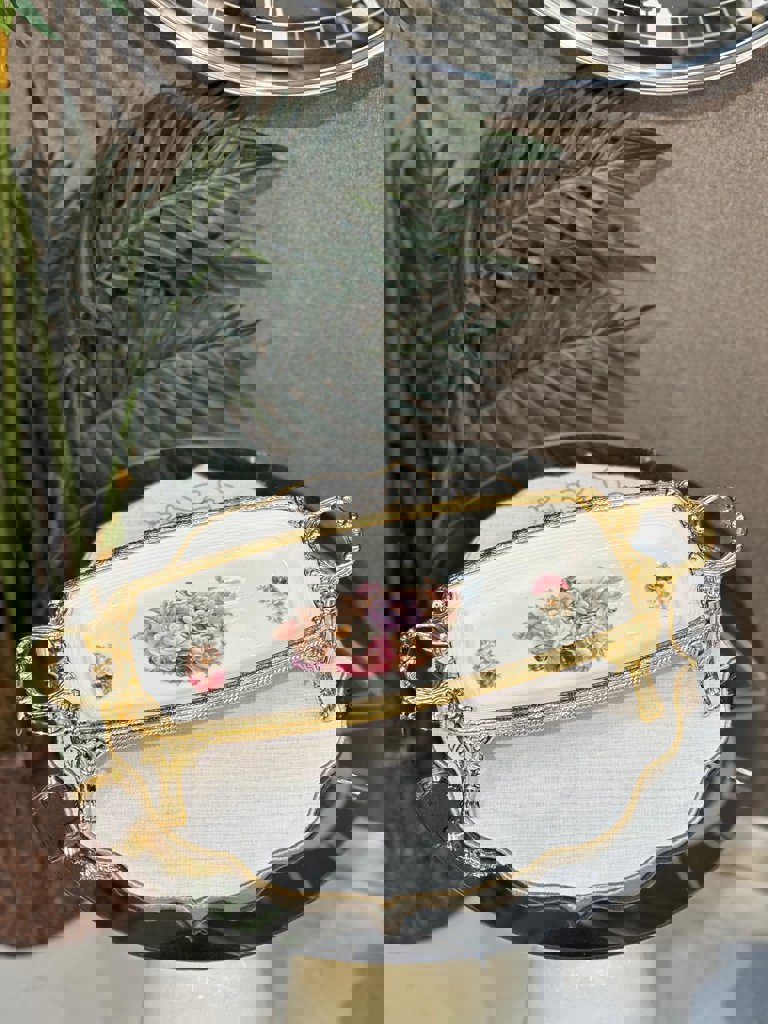 PORSELEN METAL ÇEMBERLİ OVAL KÜÇÜK BOY SUNUMLUK