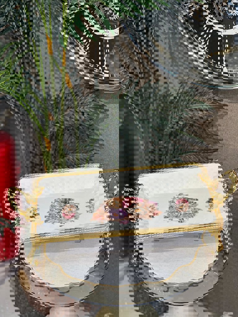 PORSELEN METAL ÇEMBERLİ DİKDÖRTGEN KÜÇÜK BOY SUNUMLUK