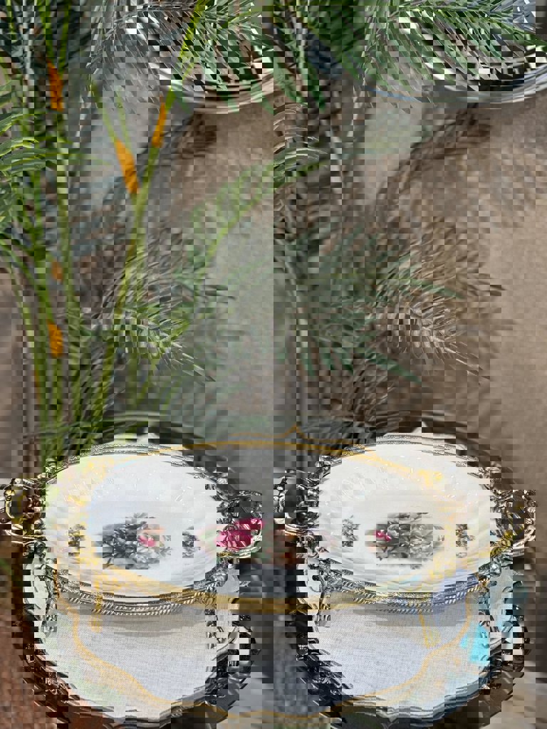 PORSELEN METAL ÇEMBERLİ OVAL KÜÇÜK BOY SERVİS