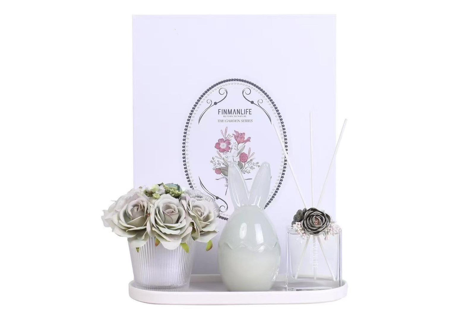 4 PARÇA TABAKLI KOKU ÇİÇEK VE MUM SETİ